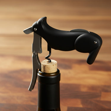 Stop howling over unopened bottles and get to sipping! This adorable black dog bottle opener makes any beer or glass of Chardonnay more enjoyable, whether you're a purebred boozehound or just drink wine once in a blue moon. This loyal bar accessory easily opens and uncorks any standard bottle and allows you to enjoy the two things you love most - dogs and yummy drinks! A paw-some gift for dog lovers who also love wine and beer, it immediately stands out and adds a fun twist to your kitchen accessories.