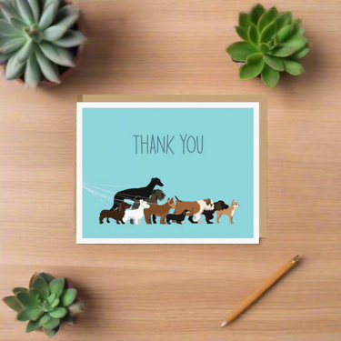 Show your appreciation with a touch of tail-wagging charm! Our Dog Thank You Card Set features an adorable group of dogs on a cheerful blue background with the simple, heartfelt message: “Thank You.” It’s the perfect way to send gratitude to fellow dog lovers, friends, or anyone who deserves a smile.