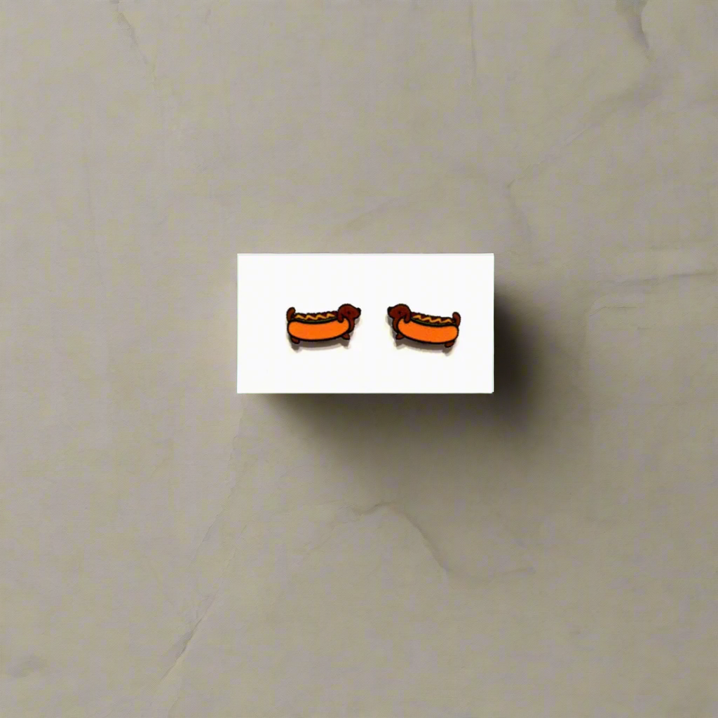 Hot Dog Puppy Earrings – Handmade Hypoallergenic Dachshund Earrings