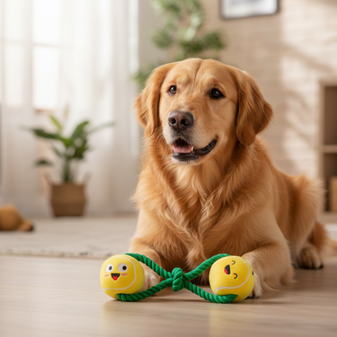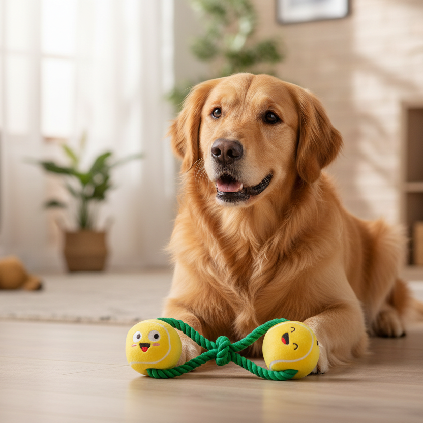 Tuggable Rope: Features a sturdy tuggable rope connecting the plush tennis ball characters, perfect for interactive games.