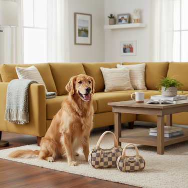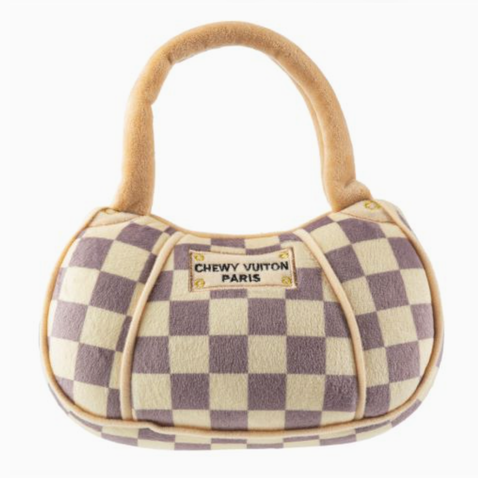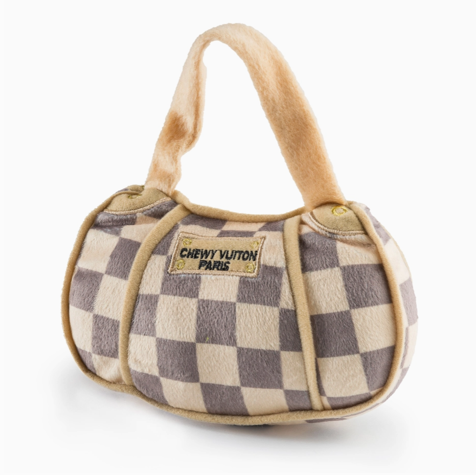 Chewy Vuiton Handbag Dog Toy – Designer Plush Squeaker Toy for Glamorous Pups