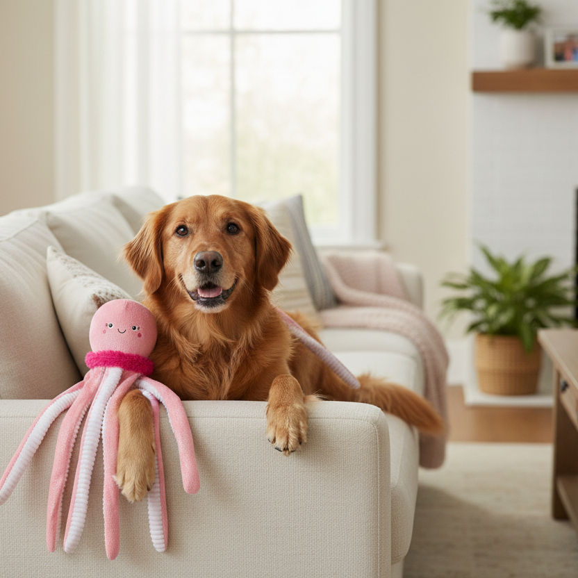Get ready for some deep-sea fun with the Do Your Own Sting Large Plush Toy! This vibrant, multi-tentacled companion is designed to be your pup's best-kept "sea-cret" for high-energy play sessions. Perfect for large-sized dogs, this toy is built for shaking, tossing, and non-stop entertainment.