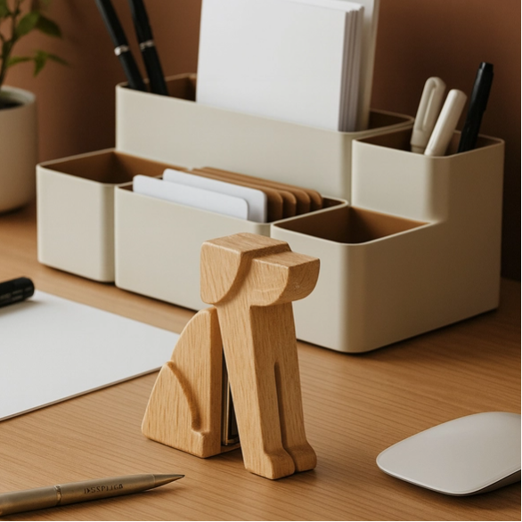 Crafted with a stunning natural wood-grain finish, the Dog Stapler features a sleek, modern silhouette that captures the essence of a loyal pup sitting at attention. Designed with sustainability in mind, this eco-friendly desk accessory is as kind to the planet as it is to your aesthetic. Its upright, space-saving design ensures it sits tall on your desk without crowding your workspace, making it a functional piece of art that’s always ready to "stay" exactly where you need it.