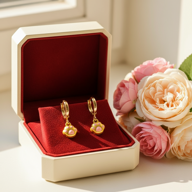 Bring a bit of lucky charm and puppy cuteness to your ears with these Gold Paw Earrings. Featuring dainty pink toe beans and shimmering gold-tone paws, these mini huggie earrings are designed to be as adorable as they are comfortable. The snug huggie style offers a secure fit perfect for everyday wear, while the playful paw print design adds just the right touch of canine flair. Measuring 0.5" x 0.5" x 0.2", these earrings are subtle yet eye-catching and ideal for layering or wearing solo. Whether you’re treating yourself or gifting your favorite dog mom, these earrings are a sweet and stylish reminder of your love for paws and pups.